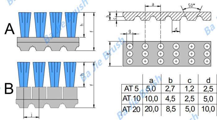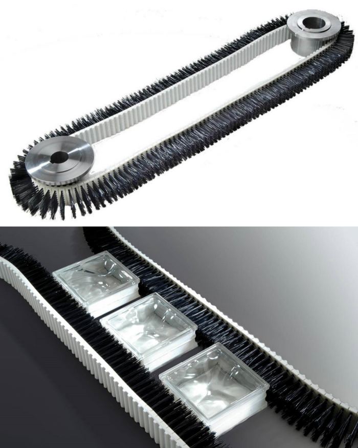 Notre Brosse de courroie de distribution Composée d'une courroie crantée et de poils en PU, elle convient aux applications exigeant un nettoyage vertical et horizontal. La brosse est disponible avec six profils de courroie standard :