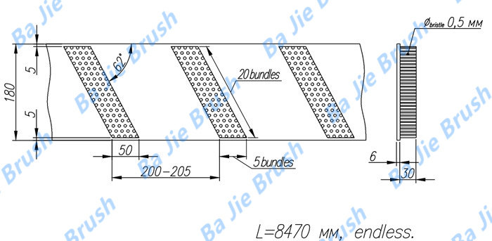 La brosse à large bande pour l'industrie du bois est composée d'une bande en cuir chromé et de poils en nylon flexibles. Elle est largement utilisée pour la production de panneaux de bois.